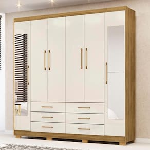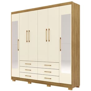 Com seis portas e puxadores diferenciados em acabamento dourado fosco, Guarda Roupa Com Espelho adiciona um toque de sofisticação e elegância ao ambiente. Seu design moderno e refinado transforma o espaço, oferecendo mais do que apenas funcionalidade, mas também estilo e requinte para o seu Quarto Casal.