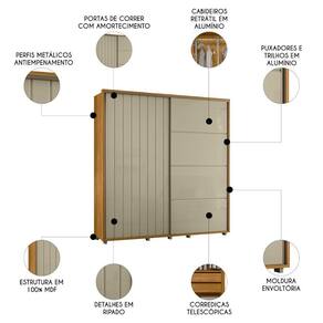 Produzido em 100% MDF, o móvel se destaca pela durabilidade e pela estética refinada. O acabamento ripado e a moldura conferem exclusividade ao design do Guarda Roupa 2 Portas, enquanto os puxadores em alumínio reforçam a elegância do estilo minimalista.