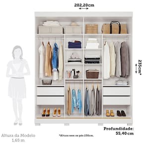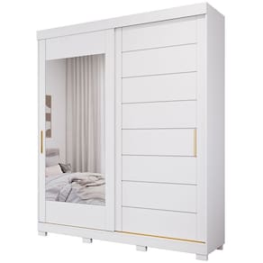O Guarda Roupa 100% MDF agrega elegância ao seu ambiente, com divisórias internas pensadas para uma perfeita organização. Portas com puxadores em Alumínio na cor dourada. Os acessórios são de qualidade superior, roldanas com regulagem para pisos desnivelados e rolamento para deslize suave. Contém 4 gavetas internas com corrediças telescópicas, os cabideiros são em alumínio com suportes metálicos. Acabamento da Prateleira: Pintura UV Escala de Brilho da Prateleira: Brilhante Possui Cabideiros: Sim Acabamento da Gaveta: Pintura UV Escala de Brilho da Gaveta: Brilhante Possui Organizador de Gaveta: Não Acabamento da Porta: Pintura UV Escala de Brilho da Porta: Brilhante Material do Puxador da Porta: Alumínio Altura do Espelho: 83 cm Altura dos Pés: 5 cm Altura Máxima dos Pés: 5.0000 Ambiente Principal: Quarto codigo_ean: 7900288094292 Complexidade da Montagem: Alta: deve ser montado por um montador especializado Cor: Branco Cor da Porta: Branco Cor do Produto: Branco Cor do Puxador: Dourado Cor Interna: Branco Escala de Brilho: Brilhante Espessura da Estrutura (mm): 15 mm Espessura das Portas (mm): 15 mm Espessura das Prateleiras (mm): 15 mm Espessura do Espelho: 3 mm Espessura do Fundo (mm): 2,5 mm Espessura do Fundo das Gavetas (mm): 2,5 mm Formato do Espelho: Retangular Gaveta com Chave: Não Informações Complementares: Portas com molduras laterais em 25mm, painél com espelho 12mm. Itens Inclusos: 1 Guarda roupa, Kit ferragens e Manual de Montagem. Largura do Espelho: 79,6 cm Linha ou Coleção: Firenze Manual de Montagem e Instalação: https://product-hub-prd.madeiramadeira.com.br/981872/documents/0341880b-c57d-4a02-a1f1-6460ab8534dd27751742390428981872150228.pdf Marca: Espresso Móveis Material da Gaveta: MDF Material da Porta: MDF Material da Prateleira: MDF Material dos Pés: ABS Material Principal: MDF modular: Não Necessita Montagem: Sim Origem do Produto: Nacional Peso: 181,15 kg Peso Máximo por Gaveta: 5 kg Peso Máximo por Prateleira: 5 kg Possui Capelinha: Não Possui Espaço para Vestidos Longos: Não Possui Espelho: Sim Possui Espelho Interno: Não Possui Ganchos: Não Possui iluminação: Não Possui Nichos: Não Possui Painel de TV: Não Possui Penteadeira: Não Possui Pés: 08 Possui Portas: Sim Possui Prateleiras: Sim Possui Sapateira: Não Produto Montado: Sim Quantidade de Cabideiros: 02 Cabideiros Quantidade de Espelho: 01 Quantidade de Gavetas: 04 Gavetas Quantidade de Portas com Espelhos: 1 Porta com Espelho Quantidade de Prateleiras: 08 Prateleiras Recomendações de Uso, Manutenção e Limpeza: Para limpeza utilizar somente pano limpo e macio, ligeiramente umedecido em água (apenas o bastante para remover a poeira), seguido de um pano seco. Sistema de Montagem: Parafusos autoatarraxantes, conjuntos minifix, cavilhas de madeira, acessórios plásticos e metálicos Tipo de Corrediça da Gaveta: Metálica Telescópica Tipo de Dobradiça/Corrediça da Porta: Metálica Tipo de Fixação do Espelho: Fita Dupla Face Tipo de Gaveta: Interna Tipo de Guarda-Roupa: Casal Tipo de Puxador da Gaveta: Não Possui Tipo de Puxador da Porta: Externo