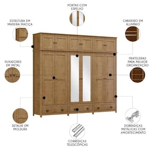 O Guarda Roupa Casal é produzido em madeira maciça, garantindo resistência, durabilidade e um acabamento refinado que valoriza o ambiente. Seu design moderno com detalhes em madeira maciça nas portas adiciona sofisticação à peça.