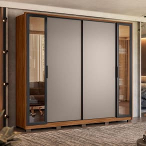 Com quatro gavetas equipadas com corrediças telescópicas, ele oferece um deslizamento suave e silencioso, além de dispensar o uso de puxadores graças ao design cava. As duas portas laterais com vidro reflecta com sua transparência adicionam um toque de elegância e modernidade ao móvel, enquanto os puxadores e acessórios em alumínio garantem durabilidade e resistência. Este Guarda Roupa também conta com duas portas de correr , que podem ser usadas na cor preto ou nogueira, permitindo personalização conforme o estilo do ambiente. Com a estrutura 100% em MDP e o design funcional fazem deste guarda-roupa uma peça essencial para manter o quarto organizado e estiloso. Além disso, ele acompanha pés de uso opcional, oferecendo ainda mais versatilidade.
