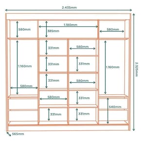 Materiais: Estrutura 100% MDF (chapa de 15mm), Corrediças Telescópicas, Puxadores em Aluminio, Cabideiro em Aluminio, Sistema de correr com guia regulavel, trilho inferior em Aluminio, Perfil anti-enpeno nas portas e trilho superior usinado.