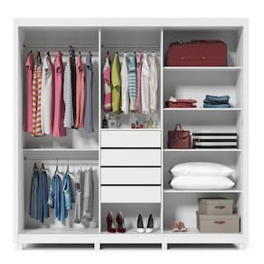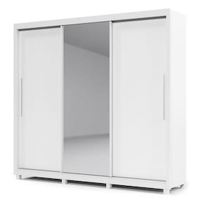 O Roupeiro Royale se destaca pela praticidade das portas de correr, contribuem para a otimização de espaço, contando com um amplo espaço interno, em que sua estrutura é formada por quatro gavetas, quatro prateleiras, além de amplo espaço para vestidos e calças. O roupeiro Royale conta também com porta com espelho inteiriço, trazendo mais sofisticação ao produto. Acabamento da Prateleira: Pintura Texturizada UV Escala de Brilho da Prateleira: Semi-Brilho Possui Cabideiros: Sim Acabamento da Gaveta: Pintura Texturizada UV Escala de Brilho da Gaveta: Semi-Brilho Possui Organizador de Gaveta: Não Acabamento da Porta: Pintura Texturizada UV Escala de Brilho da Porta: Semi-Fosco Material do Puxador da Porta: Alumínio Acabamento dos Pés: Pintura Altura do Espelho: 200,8 cm Altura dos Pés: 6.5 Altura Máxima dos Pés: 6.5000 Ambiente Principal: Quarto codigo_ean: 7909903616420 Complexidade da Montagem: Média: pode ser montado por mais de uma pessoa e/ou necessite de maior conhecimento para montagem Cor: Branco Cor do Produto: Branco Cor Flex: Não Cor Interna: Branco Escala de Brilho: Semi-Brilho Espessura do Espelho: 3 mm Formato do Espelho: Retangular Gaveta com Chave: Não Informações Complementares: Puxador da porta de espelho = material MDF Itens Inclusos: 1 Guarda Roupa, Kit Ferragens e Manual de Montagem. Largura do Espelho: 71,9 cm Linha ou Coleção: Royale Manual de Especificação Técnica: https://product-hub-prd.madeiramadeira.com.br/898594/documents/426c844e-a205-46f5-8aa4-7dc68a7e125a027e861926royale3prp1ptesp.pdf Manual de Montagem e Instalação: https://product-hub-prd.madeiramadeira.com.br/898594/documents/a30e9243-9eb4-4067-9909-4f95eab5dddcec69861925royale3prp1ptesp.pdf Material da Gaveta: MDF Material da Porta: MDF/Vidro Material da Prateleira: MDF Material dos Pés: Madeira Maciça Material Principal: MDP modular: Não Montagem Flex: Não Necessita Montagem: Sim Origem do Produto: Nacional Peso: 155 kg Peso Máximo por Gaveta: 10 kg Peso Máximo por Prateleira: 10 kg Possui Calceiros: 01 Possui Espaço para Vestidos Longos: Não Possui Espelho: Sim Possui Espelho Interno: Não Possui iluminação: Não Possui Painel de TV: Não Possui Pés: 08 Possui Portas: Sim Possui Prateleiras: Sim Possui Sapateira: Não Produto Montado: Sim Quantidade de Espelho: 01 Quantidade de Gavetas: 04 Gavetas Recomendações de Uso, Manutenção e Limpeza: A limpeza do produto deve ser feita por meio do uso de um pano, umedecido com água, e um pano seco. É importante para fazer a limpeza do móvel nunca utilizar produtos químicos ou abrasivos. Para conservar o padrão de qualidade dos produtos Gelius, nunca arraste um móvel se este estiver cheio. Nunca puxe o móvel de frente para você, pois ele pode balançar e provocar acidentes. Sapatas Niveladoras: Não Sistema de Montagem: Convencional: parafusos, pregos, cavilhas, etc. Suporta Até (kg): 150 kg Tipo de Corrediça da Gaveta: Metálica Telescópica Tipo de Dobradiça/Corrediça da Porta: Metálica Tipo de Fixação do Espelho: Molduras Tipo de Gaveta: Interna Tipo de Guarda-Roupa: Casal Tipo de Madeira Maciça dos Pés: Pinus Tipo de Puxador da Gaveta: Não Possui Tipo de Puxador da Porta: Externo