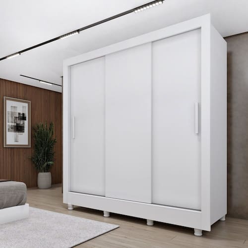 Extremamente funcional, as portas de correr otimizam o espaço no quarto, e seus trilhos de alumínio garantem um deslizamento suave e resistente. Com 190 cm de largura, 210 cm de altura e 51 cm de profundidade, o Guarda-Roupa Casal 3 Portas Taiffa com pés 109cm Espresso Móveis oferece um espaço interno inteligente: