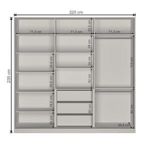 +M%F3veis+com+design+contempor%E2neo+e+cores+diferenciadas+que+se+harmonizam+facilmente+com+todos+os+estilos+de+ambientes.+Linha+de+produtos+com+alta+resist%EAncia+desenvolvidos+100%25+em+MDF%2C+com+o+objetivo+de+atender+todas+as+necessidades+do+mercado+nacional. Acabamento da Prateleira: Pintura Texturizada UV Escala de Brilho da Prateleira: Fosco Possui Cabideiros: 02 Acabamento da Gaveta: Pintura Texturizada UV Escala de Brilho da Gaveta: Fosco Possui Organizador de Gaveta: Não Acabamento da Porta: Pintura Texturizada UV Escala de Brilho da Porta: Fosco Acabamento Externo: Pintura UV Texturizada : 235 cm calculo: unidade Capelinha: Não Com Calceiro: Não Com Ganchos: Não Com Iluminação: Não Com Painel de TV: Não Com Sapateira: Não Complexidade da Montagem: Média: pode ser montado por mais de uma pessoa e/ou necessite de maior conhecimento para montagem Cr: Cr do Produto: Branco Cr Interna: Branco De Canto: Não Escala de Brilho: Fosco Espaço para Vestidos Longos: Não Espelho Interno: Não Estilo: Moderno Gaveta com Chave: Não Gaveta com Divisores: Não Gaveta(s) com Chave(s): Não Itens Inclusos: 1 Guarda Roupa e Manual de Montagem : 220 cm Linha ou Coleção: Econômica Manual de Montagem e Instalação: https://cdn2.madeiramadeira.com.br/atributo/nova-mobile/365784-03-portas.pdf Material da Gaveta: MDF Material da Porta: MDF Material da Prateleira: MDF Material Principal: MDF Necessita Montagem: Sim Origem do Produto: Nacional Peso: 200 kg Peso Máximo por Gaveta: 5 kg Peso Máximo por Prateleira: 15 kg Possui Calceiros: Não Possui Espelho: Não Possui Gavetas: 03 Possui Pés: Não Possui Portas: 03 Possui Prateleiras: 6 : 59.8 cm Recomendações de Uso, Manutenção e Limpeza: Para a limpeza do móvel utilizar uma flanela seca. Sistema de Montagem: Parafusos, Cavilhas e Minifix. Tamanho: Tipo de Corrediça da Gaveta: Metálica Telescópica Tipo de Dobradiça/Corrediça da Porta: Alumínio Tipo de Gaveta: Interna Tipo de Guarda-Roupa: Casal Tipo de Porta: Correr Tipo de Puxador da Porta: Embutido