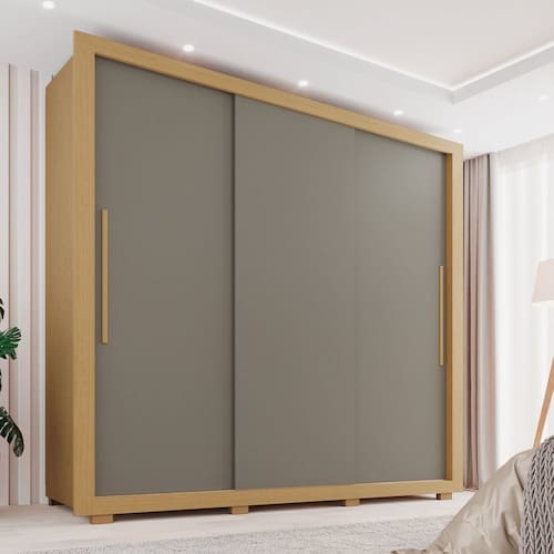 Guarda-roupa Casal 3 Portas 4 Gavetas Costa Rica Jequitibá/Granizo - Marrom