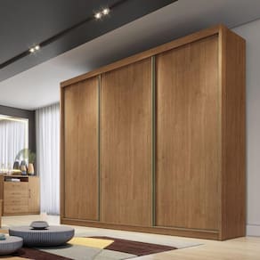 100% MDF, IDEAL PARA PEQUENOS ESPAÇOS, ALTO E COM BOA PROFUNDIDADE, COLUNADO EM 25MM, EXCELENTE DIVISÃO INTERNA, TRILHO INFERIOR EM ALUMÍNIO E ROLDANAS COM AMORTECEDORES, PERFIL PUXADOR E BATENTE ALINHADOR EM ALUMÍNIO BRONZE, ROLDANA SUPERIOR COM GUIA ZERO E FREIO, GAVETAS COM PUXADORES E CORREDIÇAS TELESCÓPICAS, CABIDEIRO E CALCEIRO EM ALUMÍNIO. Acabamento da Prateleira: Pintura Texturizada UV Escala de Brilho da Prateleira: Fosco Possui Cabideiros: 02 Acabamento da Gaveta: Pintura Texturizada UV Escala de Brilho da Gaveta: Fosco Material do Puxador da Gaveta: ABS Possui Organizador de Gaveta: Não Acabamento da Porta: Pintura Texturizada UV Escala de Brilho da Porta: Fosco Material do Puxador da Porta: Alumínio Acabamento dos Pés: Acompanha Cama Auxiliar: Acompanha Colchão: Altura da Cama: Altura do Espelho: Altura do Espelho 01: Altura do Espelho 02: Altura do Espelho 03: Altura do Espelho 04: Altura do Espelho 05: Altura do Espelho 06: Altura dos Pés: Ambiente Principal: Quarto Cama Auxiliar Acompanha Colchão: Cama Auxiliar Suporta Até (kg): Cama Suporta Até (kg): Complexidade da Montagem: Média: pode ser montado por mais de uma pessoa e/ou necessite de maior conhecimento para montagem Cor: Cumaru Cor do Produto: Cumaru Cor Flex: Cor Interna: Cumaru Escala de Brilho: Fosco Espessura do Espelho: Fita Integrada: Formato do Espelho: Gaveta com Chave: Não Guarda-Roupa Suporta Até (kg): Informações Complementares: Itens Inclusos: 1 Guarda-Roupa, Kit Ferragens e Manual de Montagem Largura da Cama: Largura do Espelho: Largura do Espelho 01: Largura do Espelho 02: Largura do Espelho 03: Largura do Espelho 04: Largura do Espelho 05: Largura do Espelho 06: Linha ou Coleção: Arezzo Manual de Especificação Técnica: Manual de Montagem e Instalação: https://cdn2.madeiramadeira.com.br/atributo/moveis-novo-horizonte/983842-manual-guarda-roupa-arezzo-plus.pdf Material da Gaveta: MDF Material da Porta: MDF Material da Prateleira: MDF Material dos Pés: Material Principal: MDF Montagem Flex: Necessita Montagem: Sim Origem do Produto: Nacional Peso: 184 Peso Máximo por Gaveta: 5 Peso Máximo por Prateleira: 10 Possui Calceiros: 01 Possui Espaço para Vestidos Longos: Possui Espelho: Não Possui Espelho Interno: Possui Ganchos: Possui iluminação: Possui Painel de TV: Possui Pés: Não Possui Portas: 03 Possui Prateleiras: 07 Possui Sapateira: Profundida de Cama: Quantidade de Espelho: Recomendações de Uso, Manutenção e Limpeza: Limpar com flanela ou pano macio seco, não utilizar produtos abrasivos, desengordurantes, álcool ou solvente. Não expor o produto diretamente à luz solar e à umidade. Sapatas Niveladoras: Sistema de Montagem: Parafuso, Cavilha e Prego Tamanho do Colchão Indicado (L x C): Tamanho do Colchão Indicado Cama Auxiliar: Tipo de Corrediça da Gaveta: Metálica Telescópica Tipo de Dobradiça/Corrediça da Porta: Metálica Tipo de Estrado: Tipo de Fixação do Espelho: Tipo de Gaveta: Interna Tipo de Guarda-Roupa: Casal Tipo de Madeira Maciça: Tipo de Madeira Maciça da Gaveta: Tipo de Madeira Maciça da Porta: Tipo de Madeira Maciça da Prateleira: Tipo de Madeira Maciça do Puxador da Gaveta: Tipo de Madeira Maciça do Puxador da Porta: Tipo de Madeira Maciça dos Pés: Tipo de Puxador da Gaveta: Externo Tipo de Puxador da Porta: Embutido
