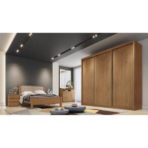 Além disso, o perfil puxador e batente alinhador em alumínio bronze e o kit espelho parafusado complementam o acabamento de alta qualidade do produto. Este roupeiro combina beleza e praticidade para quem busca um armário moderno e funcional.