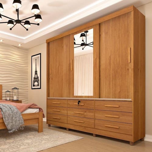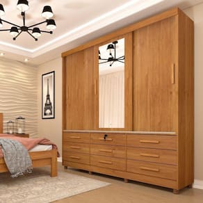 O guarda roupa Chicago possui um design inovador, com material de alta qualidade com cores incríveis. Guarda Roupa em MDP, com corrediças telescópicas, 9 gavetas externas, trilho inferior em alumínio, cabideiros em alumínio, puxadores em PVC. Deixando o ambiente mais harmonioso e lindo. Escala de Brilho da Prateleira: Semi-Brilho Possui Cabideiros: Sim Acabamento da Gaveta: Pintura Escala de Brilho da Gaveta: Semi-Brilho Material do Puxador da Gaveta: PVC Possui Organizador de Gaveta: Não Acabamento da Porta: Pintura Escala de Brilho da Porta: Semi-Brilho Material do Puxador da Porta: PVC Acabamento dos Pés: Pintura Altura dos Pés: 6 cm Altura Máxima dos Pés: 6.0000 Ambiente Principal: Quarto codigo_ean: 7908308737334 Complexidade da Montagem: Alta: deve ser montado por um montador especializado Cor: Cinamomo Cor do Produto: Cinamomo Cor Interna: Cinamomo Escala de Brilho: Semi-Brilho Espessura do Espelho: 3 mm Formato do Espelho: Retangular Linha ou Coleção: Chicago Manual de Montagem e Instalação: https://product-hub-prd.madeiramadeira.com.br/819629/documents/b3263763-d39c-410a-b0cd-5db733555c26agemroupeiro3portaschicago.pdf Material da Gaveta: MDP Material da Porta: MDP Material da Prateleira: MDP Material dos Pés: PVC Material Principal: MDP Necessita Montagem: Sim Origem do Produto: Nacional Peso: 149,24 kg Peso Máximo por Gaveta: 10 kg Peso Máximo por Prateleira: 10 kg Possui Calceiros: 01 Possui Espelho: Sim Possui Pés: 08 Possui Portas: Sim Produto Montado: Sim Quantidade de Espelho: 01 Recomendações de Uso, Manutenção e Limpeza: Não colocar o produto em lugar úmido, não arrastar, limpar somente com pano macio e seco, não expor o produto a incidência de luz solar, não colocar peso superior ao indicado. Sistema de Montagem: Parafusos, Cavilhas e Pregos Tipo de Corrediça da Gaveta: Metálica Telescópica Tipo de Dobradiça/Corrediça da Porta: Metálica Tipo de Fixação do Espelho: Fita Dupla Face Tipo de Gaveta: Externa Tipo de Guarda-Roupa: Casal Tipo de Puxador da Gaveta: Externo Tipo de Puxador da Porta: Externo Ean: 7908308737334