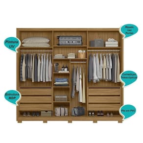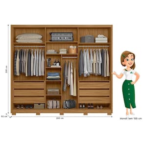 O Guarda Roupa Arizona é uma peça de mobiliário funcional e elegante, projetada para oferecer amplo espaço de armazenamento e praticidade. Com três portas de correr, essa configuração facilita o acesso ao conteúdo do guarda-roupa de maneira suave, economizando espaço no ambiente. As gavetas são equipadas com corrediças telescópicas, garantindo um deslizamento suave e estável ao abrir e fechar. Isso proporciona praticidade no armazenamento e na organização de roupas e acessórios.