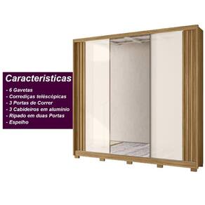 Guarda Roupa Casal Espelho 3 Portas de Correr 6 Gavetas Ripado Arizona Moval