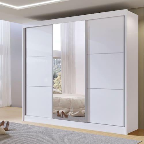 Guarda-roupa Casal 3 Portas Cristal Branco