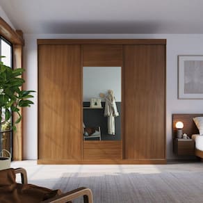 Um quarto moderno precisará de um móvel diferenciado, o Armário 3 portas de correr Samambaia traz a combinação perfeita, ótima disposição interna e modernidade, esse móvel faz parte de uma linha de produtos que está disponível no mercado, sendo assim uma linha completa para formar seu ambiente e para total conforto, modernidade e durabilidade, o armário possui 3 portas de correr, com opções com e sem espelho, a porta central conta com detalhes ripado em MDF que é uma tendência, tornando o móvel moderno, ele é confeccionado em MDP de 15mm e MDF para maior resistência, possui várias repartições para armazenar roupas e objetos, molduras nas portas laterais e centrais em MDF 25 mm, corrediças telescópicas resistentes nas gavetas, os fundos são embutidos para melhor acabamento nas laterais, trilhos de alumínio para melhor deslizamento das portas, e ótimo acabamento com pintura UV de alto resistência para satisfazer as necessidades do cliente. Materiais de primeira qualidade que respeitam o meio ambiente.