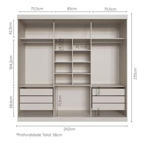 Importante: variações na percepção de cor ao comparar o produto físico com a tela do seu celular/computador podem ocorrer. Se possível, visite uma de nossas Guide Shops para ver o produto pessoalmente, ou contate nosso time de vendas para tirar suas dúvidas! Escala de Brilho da Prateleira: Fosco Possui Cabideiros: Sim Escala de Brilho da Gaveta: Fosco Acabamento da Porta: Pintura Escala de Brilho da Porta: Fosco Material do Puxador da Porta: MDF Acabamento dos Pés: Pintura Ambiente Principal: Quarto codigo_ean: 7908506294523 Complexidade da Montagem: Média: pode ser montado por mais de uma pessoa e/ou necessite de maior conhecimento para montagem Cor: Off White Cor do Produto: Off White Cor Flex: Não Cor Interna: Off white Escala de Brilho: Fosco Espessura do Espelho: 3 mm Formato do Espelho: Retangular Informações Complementares: Prateleiras Laterais = 7 Kg; Prateleira do Nicho = 2 Kg Itens Inclusos: 01 Guarda Roupa Samambaia + Manual Linha ou Coleção: Samambaia Manual de Montagem e Instalação: https://product-hub-prd.madeiramadeira.com.br/700083/documents/cf31c17f-2da1-432a-9519-822ec6788a12oupaCasalSamambaiaCabeCasa.pdf Material da Gaveta: MDP Material da Porta: MDF/MDP Material Principal: MDP Montagem Flex: Não Necessita Montagem: Sim Peso: 214,4 kg Peso Máximo por Gaveta: 5 kg Peso Máximo por Prateleira: 15 kg Possui Espaço para Vestidos Longos: Sim Possui Espelho: Sim Possui Espelho Interno: Não Possui iluminação: Não Possui Painel de TV: Não Possui Pés: Rodapé Possui Portas: Sim Possui Sapateira: Não Quantidade de Espelho: 01 Recomendações de Uso, Manutenção e Limpeza: A limpeza deve ser efetuada somente com um pano macio e seco. Não utilizar produtos abrasivos ou similares. Sistema de Montagem: Parafusos, cavilhas, pregos. Suporta Até (kg): 106 kg Tipo de Corrediça da Gaveta: Metálica Telescópica Tipo de Dobradiça/Corrediça da Porta: Metálica Tipo de Fixação do Espelho: Parafusos Tipo de Guarda-Roupa: Casal Tipo de Puxador da Gaveta: Externo Tipo de Puxador da Porta: Embutido Ean: 7908506294523
