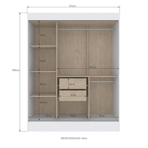 Guarda Roupas Porto, é um roupeiro com 3 portas de correr, 9 espelhos sendo 3 espelho cada porta do guarda roupa 2 gavetas internas internas produto com puxadores e trilho em plásticos PVC cor cobre e corrediças metálicas, acabamento interno com pintura UV, acabamento externo com pintura UV. Produto com boa distribuição de cabides e prateleiras.