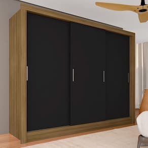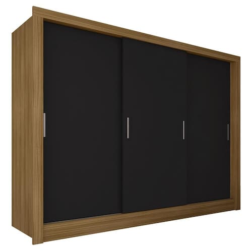 O Guarda Roupa 3 Portas de Correr Casal Aghata combinação perfeita entre praticidade e estilo, oferecendo um design moderno e funcional que economiza espaço e adiciona um toque elegante ao ambiente.Detalhes Técnicos- Montado: A: 200cm | L: 190cm | P: 52cm- 8 Divisões internas- 5 Prateleiras- 4 Gavetas- 3 Portas de correr- 4 Puxadores- 3 Cabideiros- Gavetas e Prateleiras suportam até 5kgMateriais- MDP 12mm e 15mm- Dobradiças e Corrediças metálicas- Puxadores em plástico- Cabideiros em alumínio- Revestimento: FF Fosco (Finish Foil)- Tonalidade: Boreal/PretoConteúdo da Embalagem- 01 Guarda Roupa- Manual de Montagem- Acessórios para MontagemObservações Importantes- As imagens ambientadas são meramente ilustrativas e podem apresentar itens que não incorporam o produto;- Todos os nossos produtos são novos, acompanham documento fiscal e possuem garantia de 3 meses, essa garantia cobre somente defeitos de fabricação;- A entrega só será efetuada no endereço do CEP, caso o endereço seja diferente do CEP informado no pedido, a entrega terá cobrança adicional e o comprador arcará com as despesas;- Não realizamos entregas para zonas rurais, via caminhos fluviais e distritos, por isso não aceitamos CEP GERAL da região;- Não é possível realizar o agendamento de entrega do produto, é necessário que acompanhe o rastreio de seu pedido para saber a previsão de entrega;- As entregas somente serão realizadas para um responsável maior de idade (+18);- Enviamos para diversos estados, sendo assim nossas entregas são realizadas por transportadoras parceiras de nossa empresa. Confira as dimensões antes da compra e certifique-se de que o produto passará por elevadores, portas e corredores já que nossa entrega não inclui a subida de lances de escada, transporte por elevador e o lançamento de produtos, em caso de condomínios residenciais a entrega é feita somente até a portaria. Todas as entregas são realizadas em dias e horários comerciais;- Ao receber os seus produtos observe se a embalagem se encontra em perfeitas condições. Se você adquiriu algum móvel, confira atentamente a quantidade de volumes e o aspecto físico das embalagens. Confira também se a cor do móvel está de acordo com o seu pedido;- O prazo de cancelamento por arrependimento é de até 7 dias corridos a contar da data de recebimento;- Os produtos e assistências são enviados DESMONTADOS, MONTAGENS E DESMONTAGENS recomendamos sempre a contratação de um montador profissional e é válido lembrar que o custo desses serviços é por conta do comprador;- Objetos decorativos que aparecem na foto não acompanham o produto;- Evitar a exposição direta à luz solar e à umidade;- Para limpeza, limpar com pano macio e seco, não utilizar qualquer outro tipo de produtos químicos;- As cores do produto podem variar de acordo com o monitor, a iluminação do ambiente ou sua percepção visual.