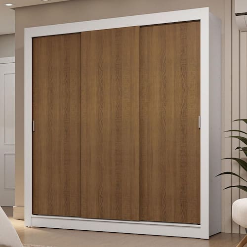 Ótimo espaço interno e organização: Ideal para um casal, possui diversos nichos e duas gavetas que facilitam a organização de roupas, calçados e acessórios. O tubo cabideiro metálico é resistente e perfeito para pendurar roupas longas.