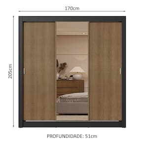 Características principais: Conta com portas de correr que deslizam suavemente, graças aos trilhos superiores e inferiores em alumínio. Isso garante um funcionamento tranquilo e sem esforço. Uma das portas conta com espelhos, que são úteis no dia a dia e deixam o móvel ainda mais elegante.