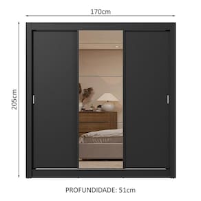 Características principais: Conta com portas de correr que deslizam suavemente, graças aos trilhos superiores e inferiores em alumínio. Isso garante um funcionamento tranquilo e sem esforço. Uma das portas conta com espelhos, que são úteis no dia a dia e deixam o móvel ainda mais elegante.