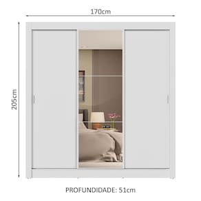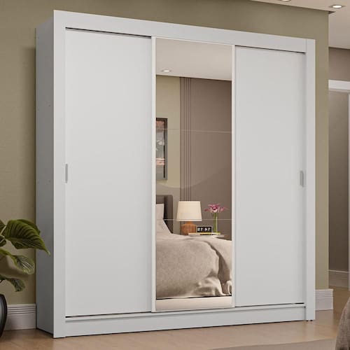 Características principais: Conta com portas de correr que deslizam suavemente, graças aos trilhos superiores e inferiores em alumínio. Isso garante um funcionamento tranquilo e sem esforço. Uma das portas conta com espelhos, que são úteis no dia a dia e deixam o móvel ainda mais elegante.