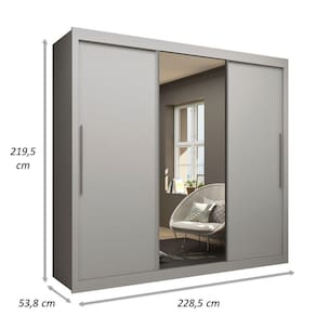 ROUPEIRO ROYALE 3P COM PORTA DE ESPELHOO Roupeiro Royale se destaca pela praticidade das três portas de correr, que contribuem para a otimização de espaço, contando com um amplo espaço interno, onde sua estrutura é formada por quatro gavetas, 4 prateleiras e espaço para vestidos e calças. O roupeiro Royale conta também com porta central de espelho trazendo mais sofisticação ao produto. O roupeiro Royale agrada pelo seu design compacto e arrojado.Características3 Tubos Cabideiros4 gavetas internas com corrediças telescópicas;Amplo espaço interno;Interno na cor nature;Kit pés opcionais;Porta de EspelhoPrateleira organizadora;Profundidade de 53cm;Puxador central em MDF;Puxadores laterais em alumínio;Estrutura em MDP;Não acompanha pés; MedidasAltura: 2195mmLargura: 2285mmComprimento: 538mmPeso: 145Kg-A tonalidade cor da peça ou tecido do produto pode variar, não acompanha acessórios de decoração, fotos e imagens ilustrativas.-Móveis entregues desmontados, em local de fácil acesso no térreo. Na caixa. A responsabilidade pela montagem e instalação do produto é exclusivamente do comprador.-Recomendações para uma boa conservação: evitar a exposição direta à luz solar e à umidade para limpeza, limpar com pano macio e seco, não utilizar qualquer outro tipo de produto.