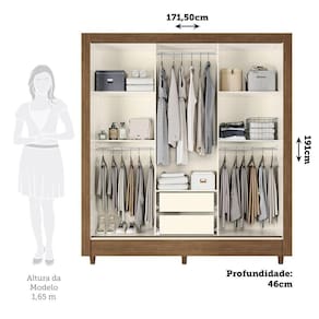 Dimensoes do Produto Altura: 191cm Largura: 171,50cm Profundidade: 46cm Peso sem embalagem: 84,70kg