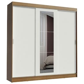 O Guarda-Roupa Kansas da Madesa possui três portas de correr com deslizamento suave, trilhos em alumínio para maior resistência e dois puxadores externos. Uma das portas possui o diferencial dos espelhos, que são muito úteis no uso diário.