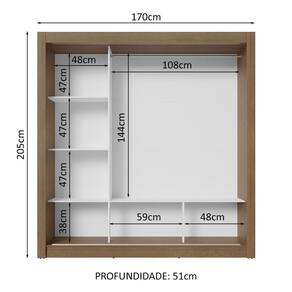 Medidas totais: 205 cm de altura x 170 cm de largura x 51 cm de profundidade.