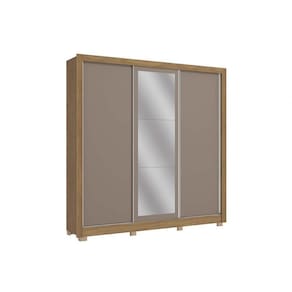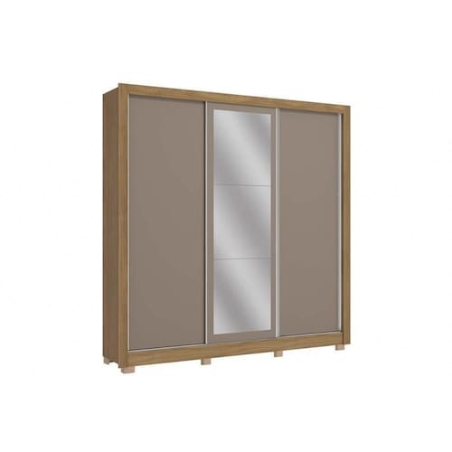 Guarda Roupa Casal 3 Portas de Correr e 2 Gavetas c/ Espelho e Pés CB07M570 Nogueira/Fendi - Kappesberg