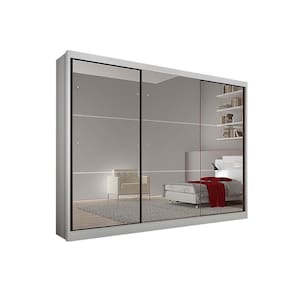 Guarda Roupa Casal 3 Portas de Correr e 4 Gavetas c/ Espelho Passion/Atlanta Branco - Novo Horizonte