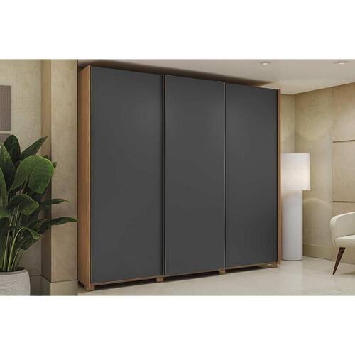 Guarda Roupa Casal 3 Portas de Correr e 4 Gavetas c/ Pés CB03T582 Canela/Grafite - Kappesberg