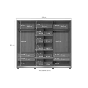 Dimensões(Cm): Comprimento(Profundidade): 58cm x Largura: 260cm x Altura: 235cm