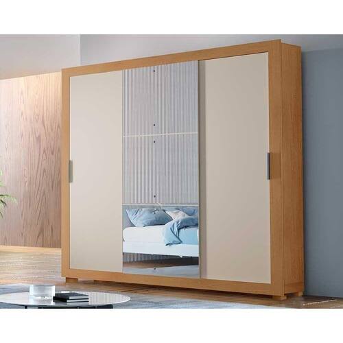 Guarda Roupa Casal 3 Portas De Correr E 4 Gavetas C/ Pés Veneza Luxo Naturale/off White - Rufato
