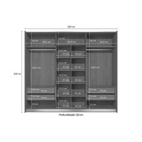Dimensões(Cm): Comprimento(Profundidade): 58cm x Largura: 260cm x Altura: 230cm