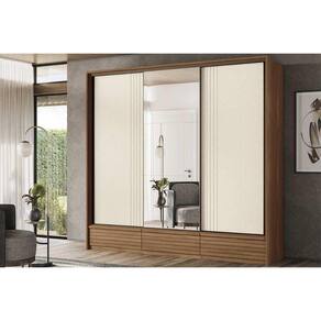 Guarda Roupa Casal 3 Portas de Correr e 5 Gavetas c/ Espelho Democrata jatoba/Areia - Santos Andirá