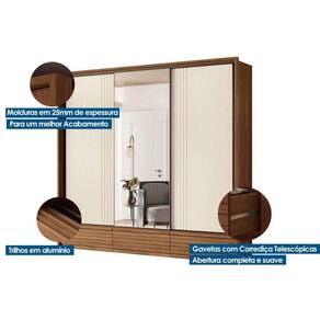 Tipo de Cabideiro - Aéreo Material dos Cabideiros - Cabideira Metálico Tipo de Porta do Guarda-Roupa - Portas de Correr Material das Portas - Portas em MDF Material do trilho da porta de correr - Trilho Metálico - Trilho Superior Metálico Tipo de Dobradiças - Dobradiças Metálicas Diferenciais das Portas - Portas Ripadas - Porta c/ Espelho Quantidade de Portas - 3 Portas de Correr Quantidade de Portas com Espelho - 1 Porta com Espelho Tipo de Espelho - Espelho Externo Quantidade de Espelhos - 3 Espelhos Material das Gavetas - Gavetas em MDF/MDP Tipo de Corrediça - c/ Corrediças Telescópicas Quantidade de Gavetas - 5 Material de Estrutura Fundo Gaveta - Em HDF Material das Prateleiras - Prateleiras em MDF/ MDP Quantidade de Prateleiras - 5