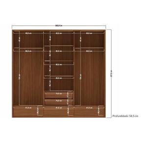 Dimensões(Cm): Comprimento(Profundidade): 61,5cm x Largura: 252,8cm x Altura: 237,5cm