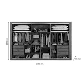 Dimensões(Cm): Comprimento(Profundidade): 63,5cm x Largura: 275cm x Altura: 235cm