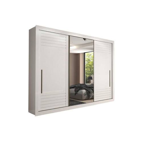 Guarda Roupa Casal 3 Portas de Correr e 6 Gavetas c/ Espelho Vitória Branco - Panan