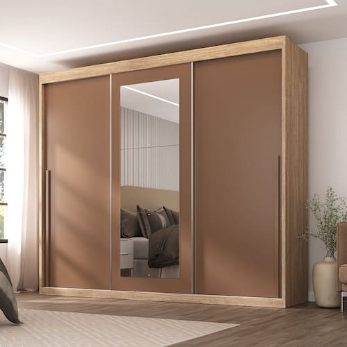 Seu designer inovador com padrões de cores modernas se aperfeiçoa perfeitamente em qualquer espaço. Acabamento da Prateleira: Pintura Escala de Brilho da Prateleira: Fosco Possui Cabideiros: 02 Acabamento da Gaveta: Pintura Escala de Brilho da Gaveta: Fosco Possui Organizador de Gaveta: Sim Acabamento da Porta: Pintura UV Escala de Brilho da Porta: Semi-Brilho Altura do Espelho: 58 cm Ambiente Principal: Quarto codigo_ean: 7900288083708 Complexidade da Montagem: Média: pode ser montado por mais de uma pessoa e/ou necessite de maior conhecimento para montagem Cor: Capuccino /Terracota Cor do Produto: Capuccino /Terracota Escala de Brilho: Semi-Brilho Espessura da Estrutura (mm): 12 mm Espessura das Portas (mm): 15 mm Espessura das Prateleiras (mm): 12 mm Espessura do Espelho: 3 mm Espessura do Fundo (mm): 3 mm Espessura do Fundo das Gavetas (mm): 3 mm Formato do Espelho: Retangular Gaveta com Chave: Não Itens Inclusos: 1 Guarda Roupa e 1 Manual de Montagem Largura do Espelho: 62 cm Linha ou Coleção: Spazio Manual de Montagem e Instalação: https://cdn2.madeiramadeira.com.br/atributo/maxel/2728415-2864-17412937466395.pdf Marca: Maxel Material da Gaveta: MDP Material da Porta: MDP Material da Prateleira: MDP Material Principal: MDP modular: Não Necessita Montagem: Sim Origem do Produto: Nacional Peso: 177,4 kg Peso Máximo por Gaveta: 3 kg Peso Máximo por Prateleira: 7 kg Possui Calceiros: Não Possui Espelho: Sim Possui Pés: Não Possui Portas: Sim Possui Prateleiras: Sim Quantidade de Cabideiros: 02 Cabideiros Quantidade de Espelho: 03 Espelhos com Tamanhos Iguais Quantidade de Gavetas: 06 Gavetas Quantidade de Portas com Espelhos: 1 Porta com Espelho Recomendações de Uso, Manutenção e Limpeza: Pano seco ou levemente umedecido, não usar produtos abrasivos Sistema de Montagem: Parafusos, cavilhas, pregos e dispositivos plásticos. Tipo de Corrediça da Gaveta: Metálica Telescópica Tipo de Dobradiça/Corrediça da Porta: Metálica Tipo de Fixação do Espelho: Parafusos Tipo de Gaveta: Interna Tipo de Guarda-Roupa: Casal Tipo de Puxador da Gaveta: Não Possui Tipo de Puxador da Porta: Externo