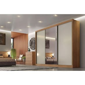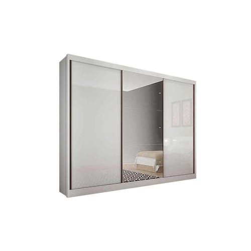 Guarda Roupa Casal 3 Portas de Correr e 8 Gavetas c/Espelho Natus Plus Branco - Novo Horizonte
