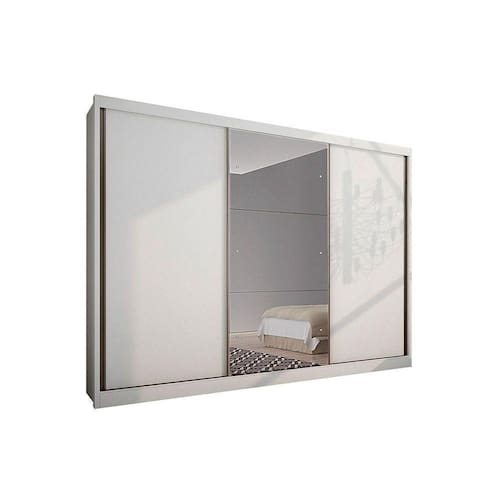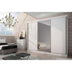 Guarda Roupa Casal 3 Portas de Correr e 8 Gavetas c/ Espelho Natus Plus Branco - Novo Horizonte