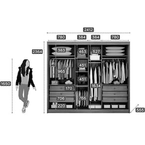 Dimensões(Cm): Comprimento(Profundidade): 55,5cm x Largura: 241,2cm x Altura: 236,4cm