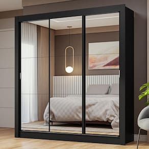 Características principais: Equipado com portas de correr que deslizam suavemente, graças aos trilhos superiores e inferiores em alumínio. Isso garante um funcionamento tranquilo e sem esforço. Todas as portas contam com espelhos, que são úteis no dia a dia e deixam o móvel ainda mais elegante.