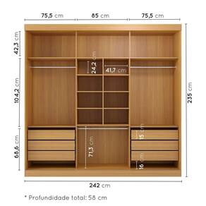 Um quarto moderno precisará de um móvel diferenciado, o Armário 3 portas de correr Samambaia traz a combinação perfeita ótima disposição interna e modernidade, esse móvel faz parte de uma linha de produtos que está disponível no mercado, sendo assim uma linha completa para formar seu ambiente e para total conforto, modernidade e durabilidade, o armário possui 3 portas de correr, com opções de portas lisas ou ripadas, com ou sem espelho que é uma tendência, tornando o móvel moderno, ele é confeccionado em MDP de 15mm e MDF para maior resistência, possui várias repartições para armazenar roupas e objetos, molduras nas portas laterais e centrais em MDF 25 mm. Materiais de 1ª qualidade que respeitam o meio ambiente. Acabamento da Prateleira: Pintura UV Escala de Brilho da Prateleira: Fosco Possui Cabideiros: 02 Acabamento da Gaveta: Pintura UV Escala de Brilho da Gaveta: Fosco Possui Organizador de Gaveta: Não Acabamento da Porta: Pintura UV Escala de Brilho da Porta: Fosco Material do Puxador da Porta: MDF Altura dos Pés: 8 cm Altura Máxima dos Pés: 8.0000 Ambiente Principal: Quarto codigo_ean: 7909903487112 Complexidade da Montagem: Alta: deve ser montado por um montador especializado Cor: Carvalho Cor do Produto: Carvalho Cor Interna: Carvalho Escala de Brilho: Fosco Gaveta com Chave: Não Itens Inclusos: 1 Guarda Roupa, Manual de Montagem e Kit Ferragens Linha ou Coleção: Samambaia Manual de Montagem e Instalação: https://product-hub-prd.madeiramadeira.com.br/880349/documents/a6735923-91cd-429a-8a49-62e4816a982coupacasalsamambaiacabecasa.pdf Material da Gaveta: MDP Material da Porta: MDP Material da Prateleira: MDP Material dos Pés: MDP Material Principal: MDF/MDP modular: Não Necessita Montagem: Sim Origem do Produto: Nacional Peso: 211 kg Peso Máximo por Gaveta: 5 kg Peso Máximo por Prateleira: 15 kg Possui Calceiros: Não Possui Espelho: Não Possui Pés: Rodapé Possui Portas: Sim Possui Prateleiras: Sim Produto Montado: Sim Quantidade de Gavetas: 06 Gavetas Quantidade de Prateleiras: 06 Prateleiras Recomendações de Uso, Manutenção e Limpeza: A limpeza deve ser efetuada somente com um pano macio e seco. Não utilizar produtos abrasivos ou similares. Sistema de Montagem: Parafusos, cavilhas, pregos. Tipo de Corrediça da Gaveta: Metálica Telescópica Tipo de Dobradiça/Corrediça da Porta: Metálica Tipo de Gaveta: Interna Tipo de Guarda-Roupa: Casal Tipo de Puxador da Gaveta: Não Possui Tipo de Puxador da Porta: Embutido