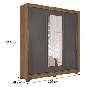 Guarda Roupa Casal 3 portas de correr com espelho Maringá com espelho Jatobá Grafite - Santos Andirá