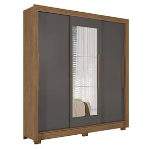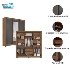Guarda Roupa Casal 3 portas de correr com espelho Maringá com espelho Jatobá Grafite - Santos Andirá