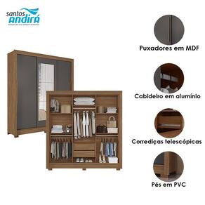 Guarda Roupa Casal 3 portas de correr com espelho Maringá com espelho Jatobá Grafite - Santos Andirá