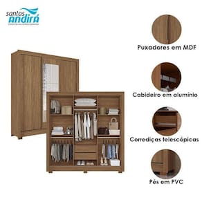 Guarda Roupa Casal 3 portas de correr com espelho Maringá com espelho Jatobá - Santos Andirá