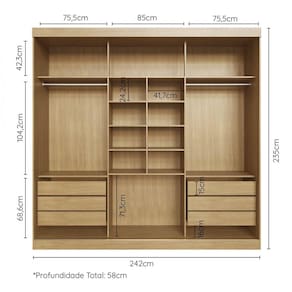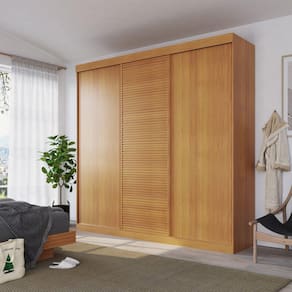 Um quarto moderno precisará de um móvel diferenciado, o Armário 3 portas de correr Samambaia traz a combinação perfeita ótima disposição interna e modernidade, esse móvel faz parte de uma linha de produtos que está disponível no mercado, sendo assim uma linha completa para formar seu ambiente e para total conforto, modernidade e durabilidade, o armário possui 3 portas de correr, com opções com e sem espelho, a porta central conta com detalhes ripado em MDF que é uma tendência, tornando o móvel moderno, ele é confeccionado em MDP de 15mm e MDF para maior resistência, possui várias repartições para armazenar roupas e objetos, molduras nas portas laterais e centrais em MDF 25 mm. Materiais de 1ª qualidade que respeitam o meio ambiente. Acabamento da Prateleira: Pintura Texturizada UV Escala de Brilho da Prateleira: Fosco Possui Cabideiros: 03 Acabamento da Gaveta: Pintura Texturizada UV Escala de Brilho da Gaveta: Fosco Material do Puxador da Gaveta: MDP Possui Organizador de Gaveta: Não Acabamento da Porta: Pintura Texturizada UV Escala de Brilho da Porta: Fosco Ambiente Principal: Quarto Complexidade da Montagem: Média: pode ser montado por mais de uma pessoa e/ou necessite de maior conhecimento para montagem Cor: Carvalho Cor do Produto: Carvalho Cor Interna: Carvalho Escala de Brilho: Fosco Gaveta com Chave: Não Guarda-Roupa Suporta Até (kg): 106 kg Informações Complementares: Peso suportado Prateleiras Laterais = 7 Kg; Prateleira do Nicho = 2 Kg Itens Inclusos: 1 Guarda Roupa, kit de ferragens e manual de montagem Linha ou Coleção: Samambaia Manual de Montagem e Instalação: https://cdn2.madeiramadeira.com.br/atributo/fama-moveis/1193819-famamveis-manualdemontagem-guardaroupacasalsamambaiacabecasa.pdf Material da Gaveta: MDP Material da Porta: MDF/MDP Material da Prateleira: MDP Material Principal: MDP Necessita Montagem: Sim Origem do Produto: Nacional Peso: 211 kg Peso Máximo por Gaveta: 5 Peso Máximo por Prateleira: 15 Possui Calceiros: Não Possui Espelho: Não Possui Espelho Interno: Não Possui Painel de TV: Não Possui Pés: Não Possui Portas: 03 Possui Prateleiras: 09 Recomendações de Uso, Manutenção e Limpeza: A Limpeza do móvel deve ser efetuada somente com pano macio e seco. Não utilizar produtos abrasivos ou similares, tais como : Cera; Álcool; Detergentes; Tinner; Lustra Móveis; etec. Não utilizar produtos abrasivos ou similares, tais como: Cera; Álcool; Detergentes; Tinner; Lustra-móveis; entre outros. Sistema de Montagem: Parafusos, Cavilhas, Pregos, Dispositivo Plástico e Porca Cilíndrica. Tipo de Corrediça da Gaveta: Metálica Telescópica Tipo de Dobradiça/Corrediça da Porta: Metálica Tipo de Gaveta: Interna Tipo de Guarda-Roupa: Casal Tipo de Puxador da Gaveta: Externo Tipo de Puxador da Porta: Não Possui - Abertura por Fecho Toque